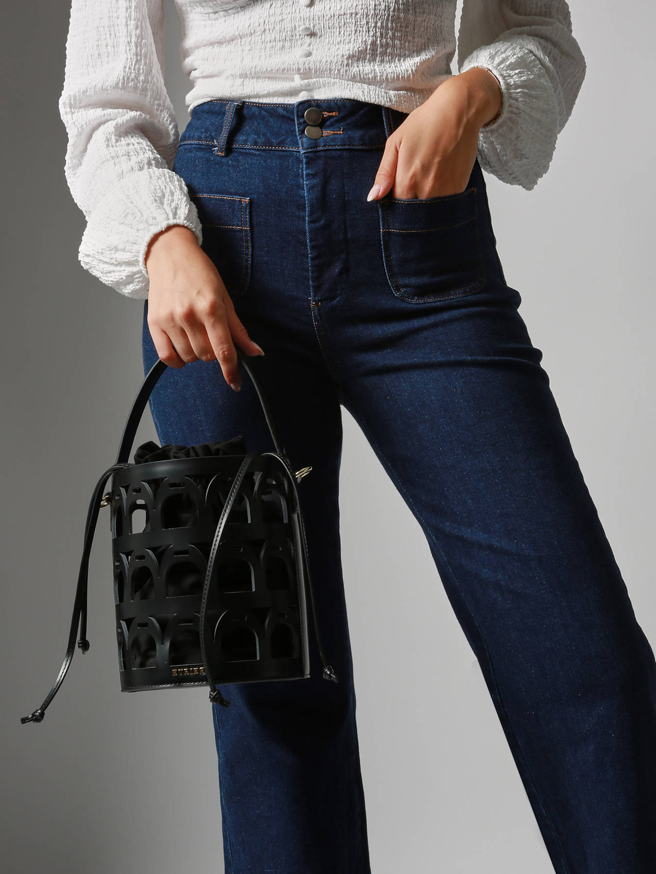 Le sac bandoulière ETRIER de la ligne EPONA séduit par son design structuré et contemporain. Confectionné en cuir, ce modèle seau se distingue par sa silhouette géométrique rigide et ses étriers subtilement intégrés, signature discrète mais emblématique de la marque. Il s’ouvre grâce à un pochon en tissu muni d’un cordon de serrage, il est fixé au fond du sac par un bouton pression pour un bon maintien. Pensé pour s’adapter à toutes vos envies de style, ce sac peut se porter à la main grâce à sa poignée, ou en travers du corps avec sa bandoulière réglable et amovible. Une pièce à l’allure moderne et raffinée idéale pour structurer une silhouette avec caractère.
