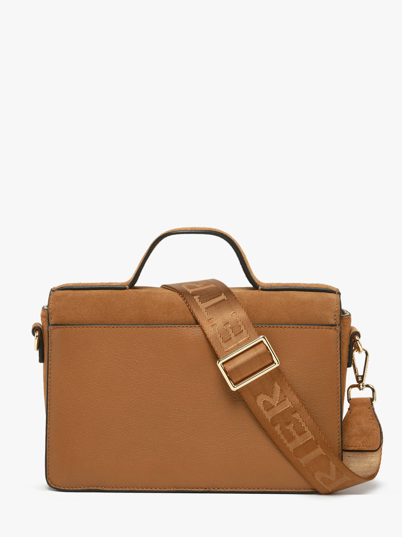 The ETRIER crossbody bag from the ALTESSE SUEDE line comes in its model M, the largest size. This new winter edition of our iconic line features velvety leather with a soft, warm touch, blending timeless elegance with a ""Highlander Cowboy"" spirit. The back of the bag is made of grained leather, providing better durability. It features a magnetic flap adorned with the gold-tone Etrier emblem, a small handle for a refined handheld carry, and an adjustable, removable strap for versatile styling.