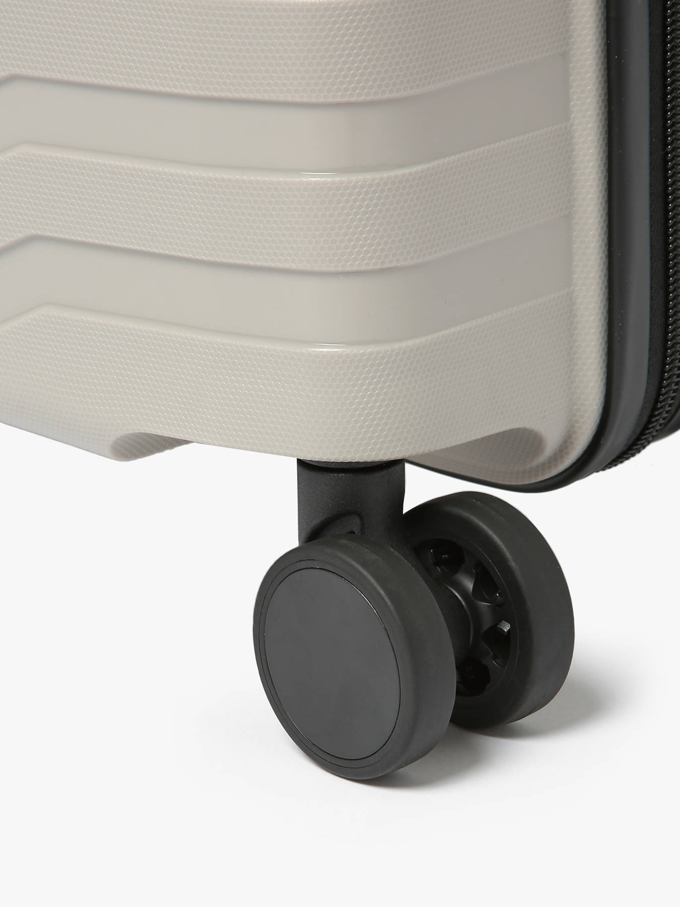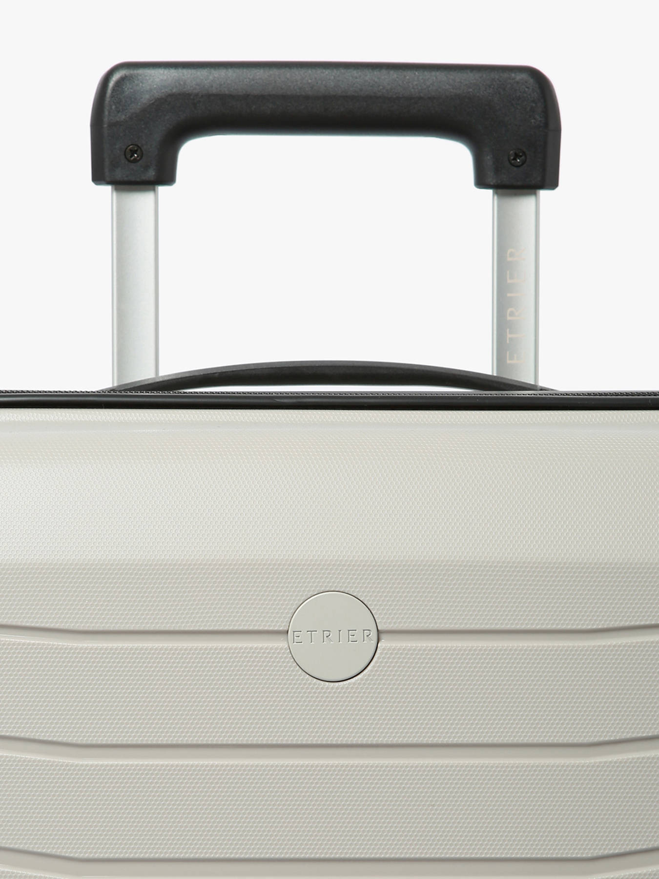 The Toronto suitcase combines lightness and practicality for medium-term travel. Made from durable polypropylene, it features a zipper closure secured by a TSA lock and 4 twin wheels for smooth travel. With a tone-on-tone Etrier logo, a special pocket for wet goods and an 80L capacity, it offers generous space while remaining elegant and functional.