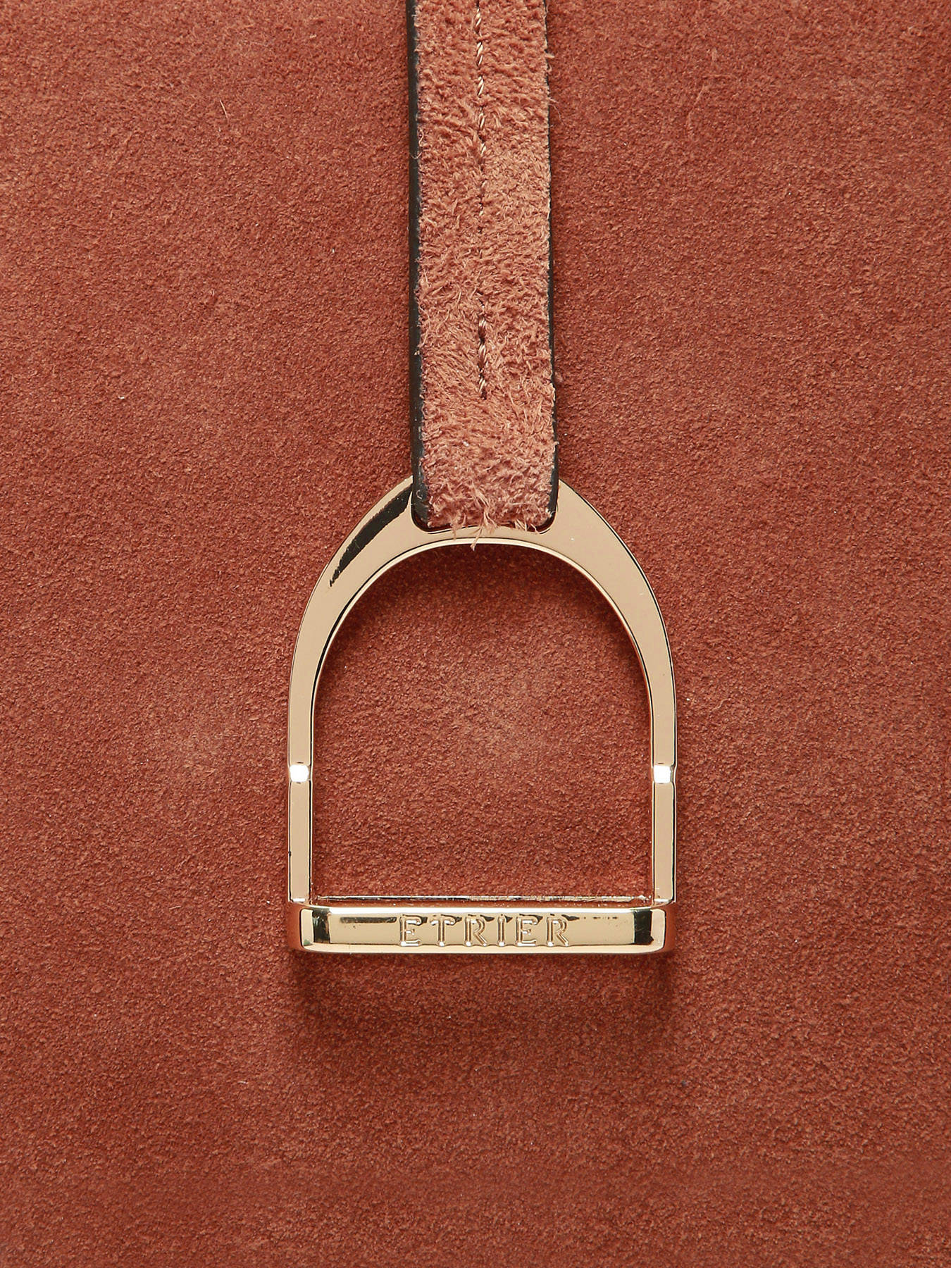 The ETRIER shoulder bag from the ALTESSE SUEDE line is crafted from velvety leather with a soft, warm feel. This half-moon shaped model is both trendy and elegant. It can be worn on the shoulder or as a crossbody thanks to its removable and adjustable strap. The brand’s iconic stirrup — here in a gold finish — adorns the zipper pull, adding a refined touch to the design. The back of the bag features grained leather for added contrast and enhanced durability. Inside, the bag offers two slip pockets and one zipped pocket for optimal organization. The ALTESSE SUEDE line reinvents the House’s iconic piece by infusing it with a ""Highlander Cowboy"" spirit — a subtle blend of timeless elegance and contemporary boldness.