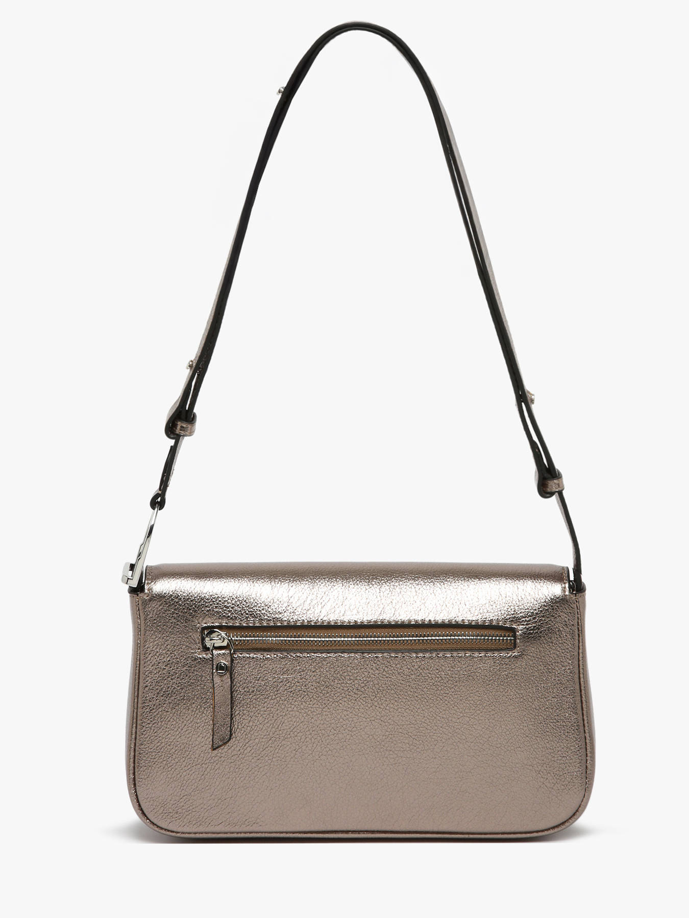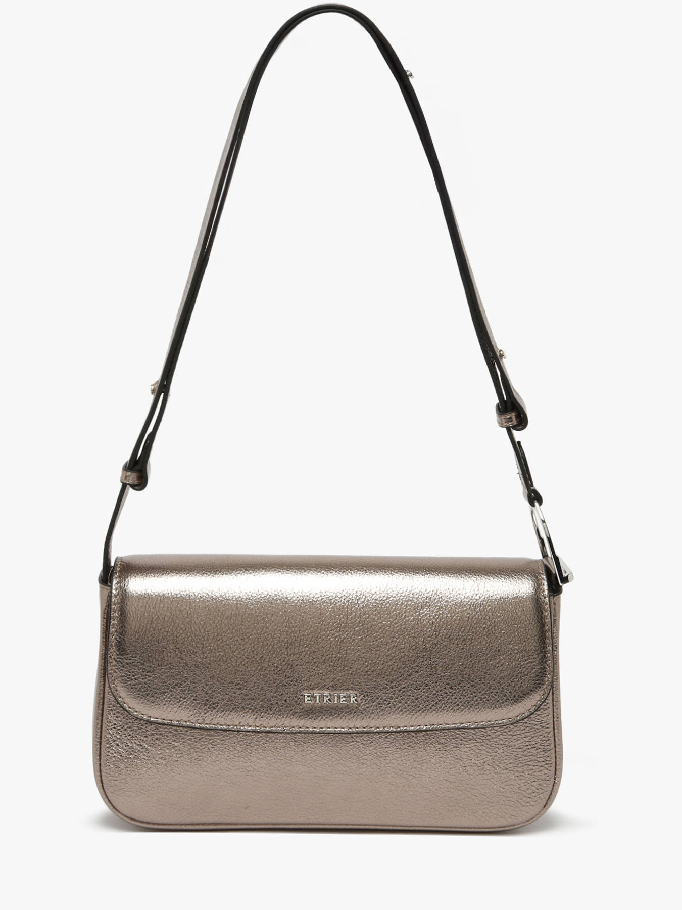 Inspired by the ""Highlander Cowboy"" spirit, this ETRIER shoulder bag from the JOLLY line captivates with its iridescent cowhide leather and refined finishes. This baguette bag, adorned with the iconic stirrup detail on the strap, features a combined closure with a flap secured by a magnetic snap and a zipper, ensuring security and practicality. It can be worn on the shoulder or crossbody thanks to its adjustable and removable strap. Functional, it offers a zipped pocket on the back for quick access, as well as a well-organized interior with a central compartment, two slip pockets, and a zipped pocket. Bright and bold, this model reflects a strong winter style, blending elegance and character. A stylish and practical accessory, perfect to boldly complement your winter looks.